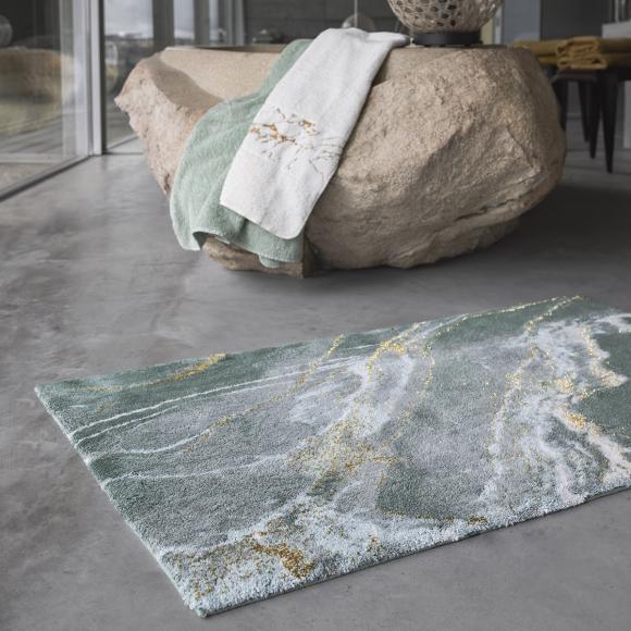 The design of the Lipari Bath Rug is inspired by natural stone patterns, featuring rich green hues and intricate veining that create a sophisticated and serene aesthetic. Transform your bathroom into a luxurious retreat with the Lipari Bath Rug by Abyss & Habidecor, where exceptional quality meets timeless design.