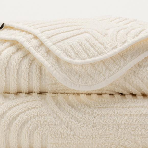 The Olly towels feature a sophisticated geometric textured pattern, adding a touch of modern elegance to any bathroom decor. Available in a serene ivory colour or a rich gold, these towels are not only visually appealing but also provide the ultimate comfort and performance.
