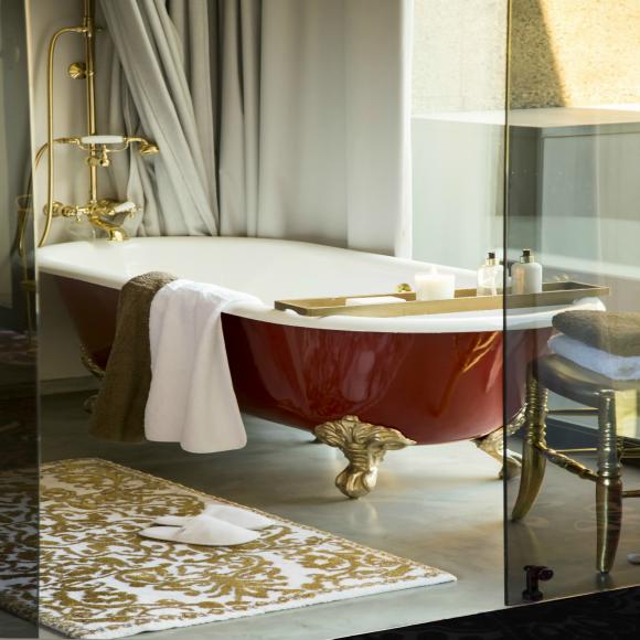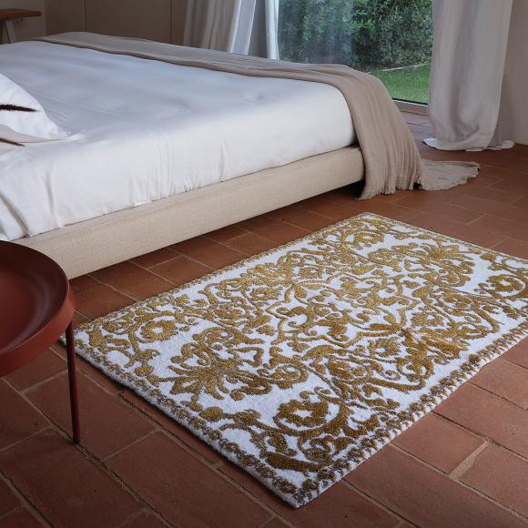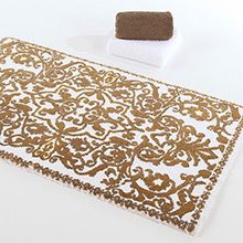 One of the most beautiful bath rugs ever produced, Perse sparkles with its lurex content and caresses your feet with its deep pile cotton. An ornate pattern and a rug that will add the finishing touch to your bathroom.