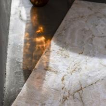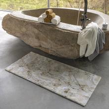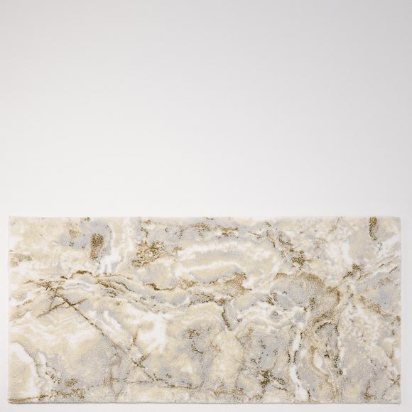 An ornate pattern resembling a stunning marble on a rug that will add the finishing touch to your bathroom.