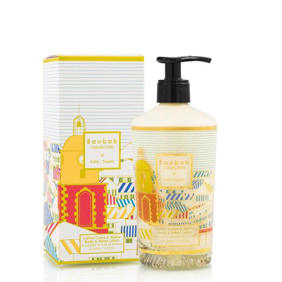The Baobab Collection Saint Tropez hand and body lotion’s fragrance is refreshing and energizing. Mint is the top note that gives the fragrance its full freshness. However, a fruitier heart note can be detected, suggesting notes of blackcurrant. This perfume fully embodies its summer inspiration. It was imagined as a moment of vacation on the port of Saint Tropez where the aroma of the Mediterranean summer meets the sun.