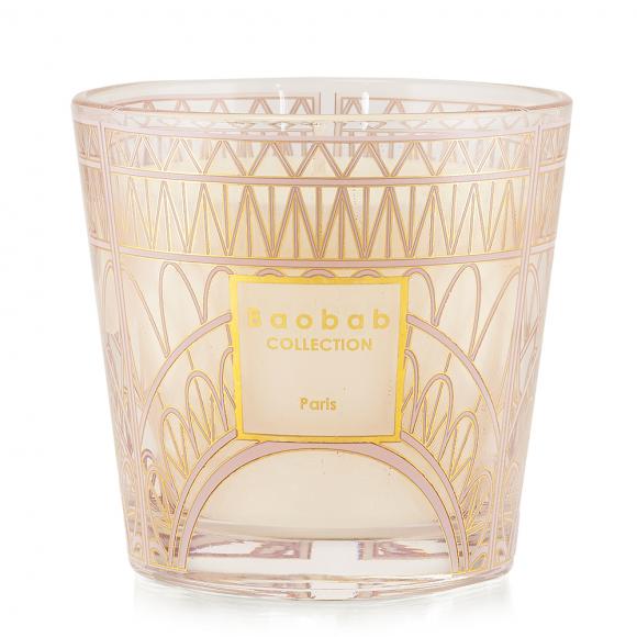 The Paris scented candle is decorated with a powder pink and gold silkscreen print that resembles the stylized structure of the Eiffel Tower. We celebrate the beautiful month of May in Paris, memories of chestnut and green blossoms.