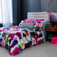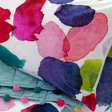 The Abstract Duvet and Pillowcase Set features organic multicoloured painterly shapes of the iconic Abstract fabric, born from Fi's natural painting process. The palette that evolves when she creates her original watercolours in her favourite pink, purple and teal with pops of red and green.