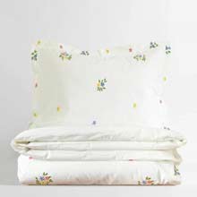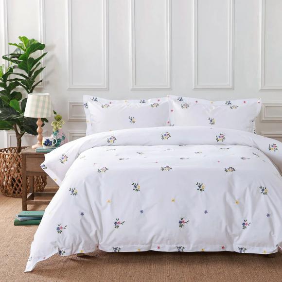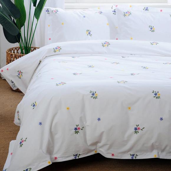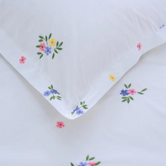A subtle and sweet floral embroidery on a soft white cotton percale.