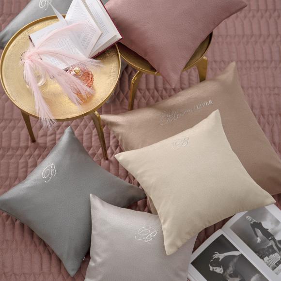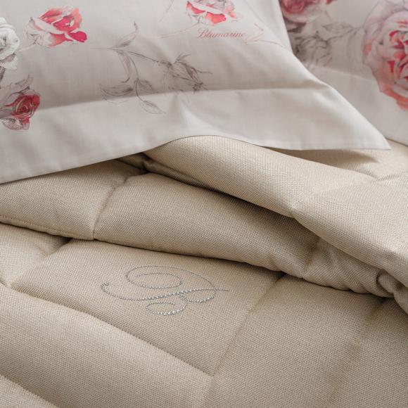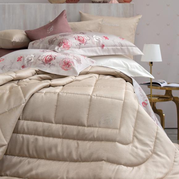 A plain collection in a multitude of colours, featuring Blumarine's signature crystal logos. Padded and quilted, also features two size matching cushions.