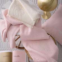 A beautiful, soft collection from Blumarine Home. The usual crystal logo is made up from pearls and crystals for this design and we think it works perfectly with the soft pastel colours.