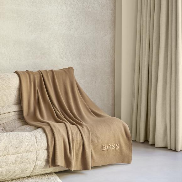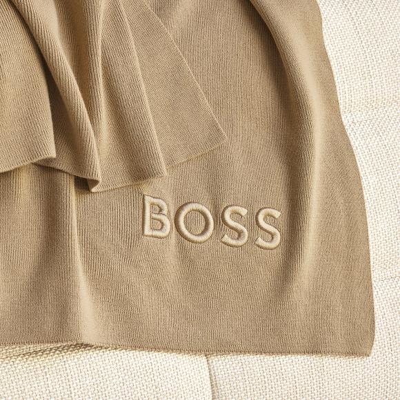 This Bold Logo throw is minimalist yet elevated, designed by Boss Home. Knitted with a soft finish, and derived from a cotton blend. These throws are perfect for beds, sofas or chairs.