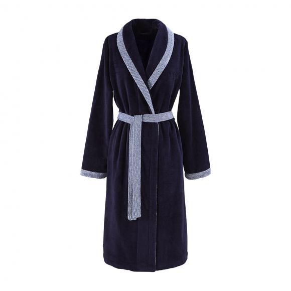 Velvet bathrobe with shawl collar and tone on tone chest embroidered logo.