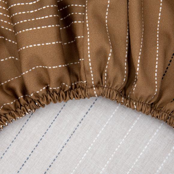 Rhythmic 'tennis stripes' follow one another and then a jump in the alignment tricks the eye by creating a surprise kinetic optical illusion. This collection borrows the brands iconic code. This fitted sheet ha san elasticated edge.