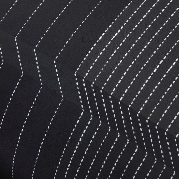 Rhythmic 'tennis stripes' follow one another and then a jump in the alignment tricks the eye by creating a surprise kinetic optical illusion. This collection borrows the brands iconic code.