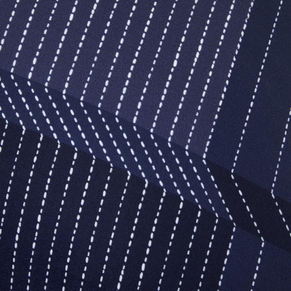 Rhythmic 'tennis stripes' follow one another and then a jump in the alignment tricks the eye by creating a surprise kinetic optical illusion. This collection borrows the brands iconic code.