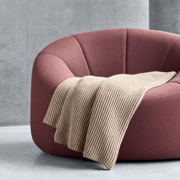 A modern plain knitted throw with wool and alpaca by Hugo Boss.