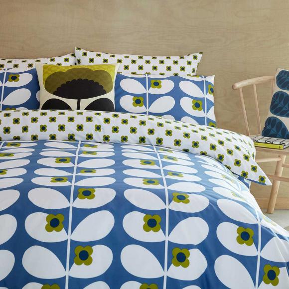 Orla Kiely’s signature stem print marries beautifully with another quintessential Orla motif, the four-petal flower, to add a touch of charm to your bedroom.