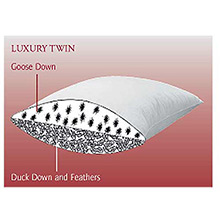 This is the softest twin pillow with Premier Hungarian Goose down (90%) on the softest side and a firmer mixture of Pyrenean duck down and feather (30%/70%) on the other side.