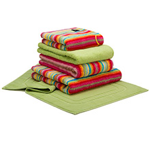 The towel also comes in a complimentary check (7017/25), and in this colourway (col. 25) is energetic and bright.