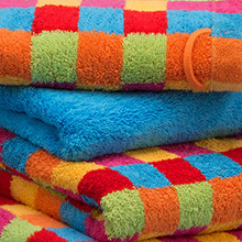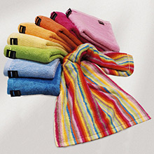 The towel also comes in a complimentary stripe (7008/25), and in this colourway (col. 25) is energetic and bright.