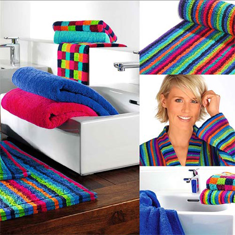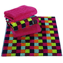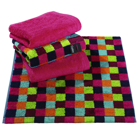 The towel also comes in a complimentary cubes (karo) design (7047/84), and in this colourway (col. 84) is rich and fashionable.