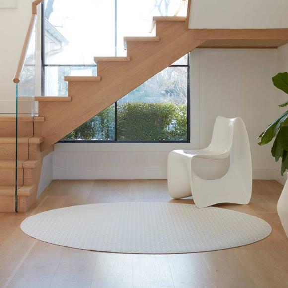 The Chilewich rug is made using a backing of slip resistant latex. Therefore the rug will not only feel comfy underfoot, but no rug pad is required.