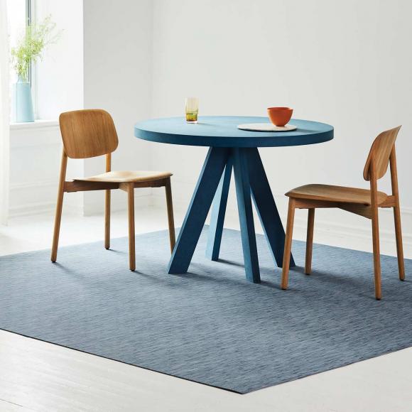 The Chilewich rug is made using a backing of slip resistant latex. Therefore the rug will not only feel comfy underfoot, but no rug pad is required.