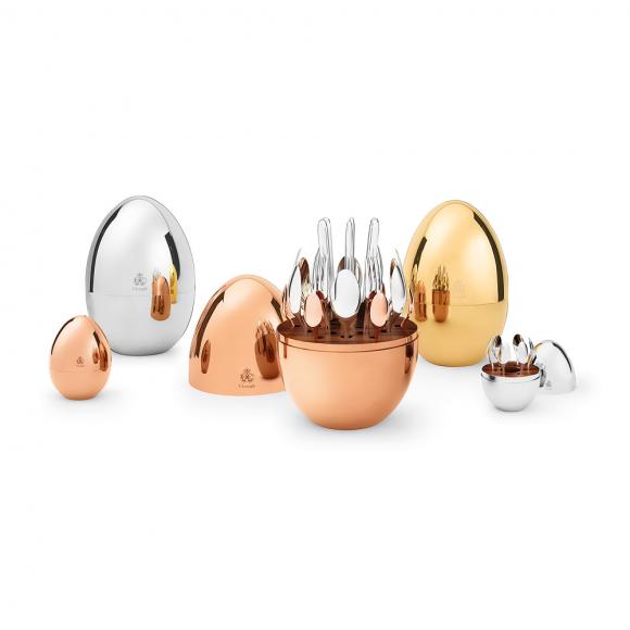 By combining its 24 carat gold plated flatware with a mirror polished 24 carat gold plated stainless steel egg chest, the Mood is certainly on an all time high.