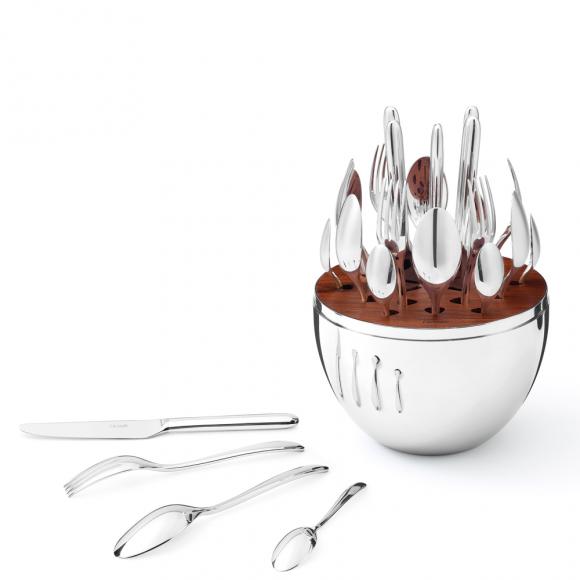 Mood is more than a simple set of flatware in Christofle silverplate, it is conceived as a decorative object which brings brightness to a kitchen or a living-room.