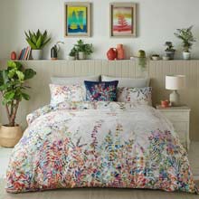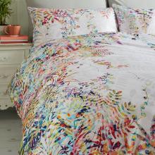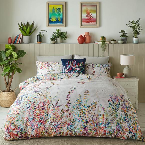 This beautiful bed linen design features tendrils of rainbow acacia leaves dancing across a soothing neutral background.