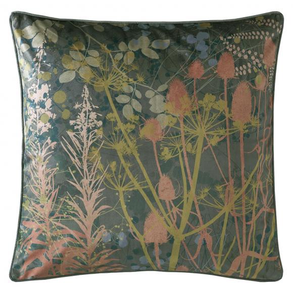 Delicate leaves, vines, stems, and flowers weave their way across this gorgeous velvet piped cushion, in a palette of warm Mediterranean hues. The design is a snapshot of Clarissa’s craft - after hours of screen printing these serendipitous patterns emerge on the printing table backing cloth. The result is pure botanical magic.