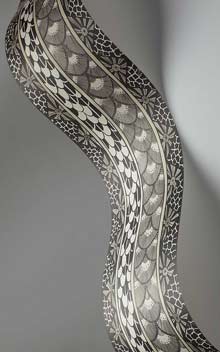 Designed to be hung both vertically and horizontally it is offered in colourings of black and white, soft olive, and a dramatic burnt orange and charcoal.