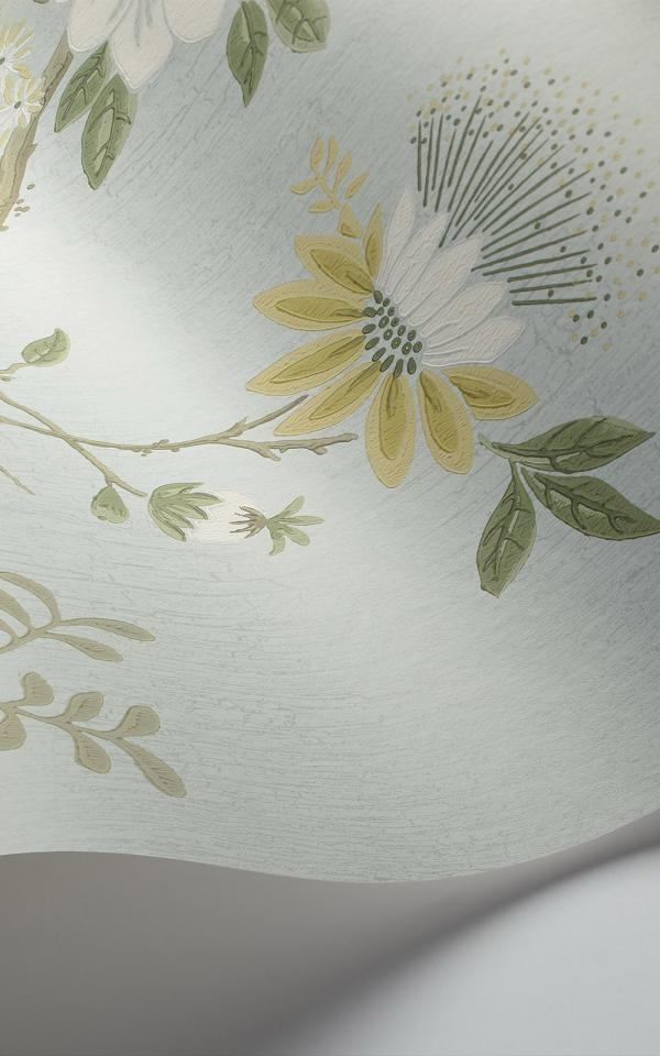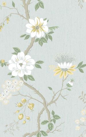 One of Cole & Son’s archival prints. Reworked floral elements make each colour way reflective of the Camellia Japonica, whilst retaining the design’s original crackled glaze background. Its high shine, leather-like leaves and showy flower heads are stunning in their enticing form. Designed in traditional tones of Lemon & Sage on Print Room Blue.