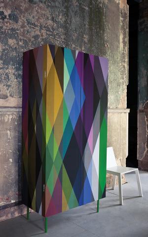 Circus is a striking large-scale wallpaper panel of overlapping multi-coloured harlequins.
