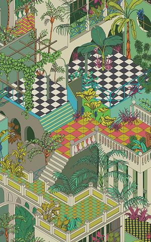 Continue ShoppingPaying homage to the epicentre of tropical, kitsch style, the exuberant Miami features giddy layers of terraced colonnades and lush tropical vegetation. Miami is offered in a pretty palette of pastels, botanic greens and limes, and a moodier twilight colouring reflecting mid-century Deco architecture and glamour from day to night.