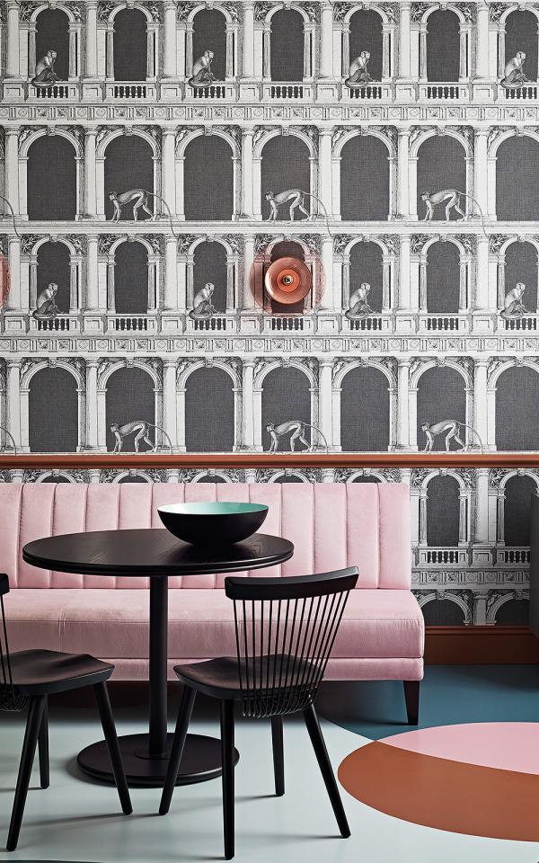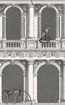 A whimsical companion to Procuratie, Procuratie e Scimmie features monkeys perching amongst the pillars and arches of the famous venetian facades in St Mark's Square. Offered in a palette to directly coordinate with Procuratie.