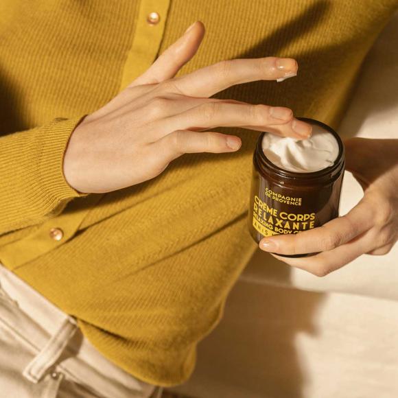 The light-as-air texture has a comforting effect, while essential oils of lavender and star anise relieve the body of tensions. This fast-absorbing cream leaves skin nourished and comforted. Its scent calms the senses, bringing a feeling of relaxation and well-being.