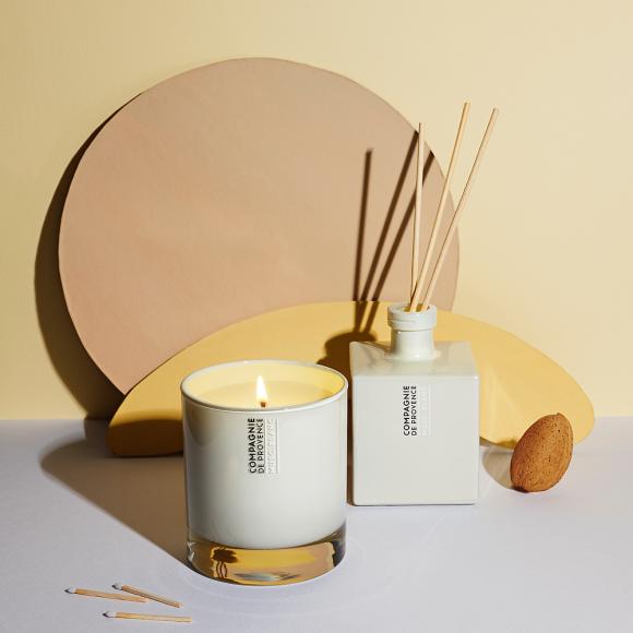 The candle brings together a blend of mineral and vegetal wax, and a pure cotton wick that ensures an optimal diffusion of the perfume.