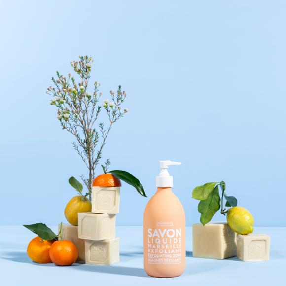 30 Years after the first liquid Marseille soap, La Compagnie De Provence innovates again and introduces the first liquid exfoliating soap made from Marseille Soap.
