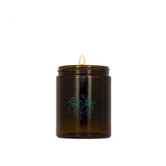 The combination of the candle's light and scent, with mint and basil essential oils, known for their energizing benefits, creates an uplifting atmosphere.