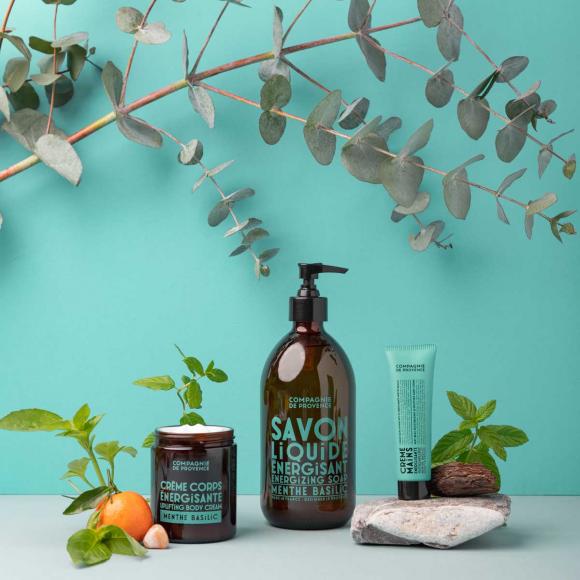This energising Mint Basil soap will give you a boost with powers of peppermint, Basil and Clary Sage combined with Yellow Tangerine, full of vitamin C essential oils grown in Provence to face the day with energy.