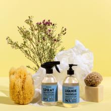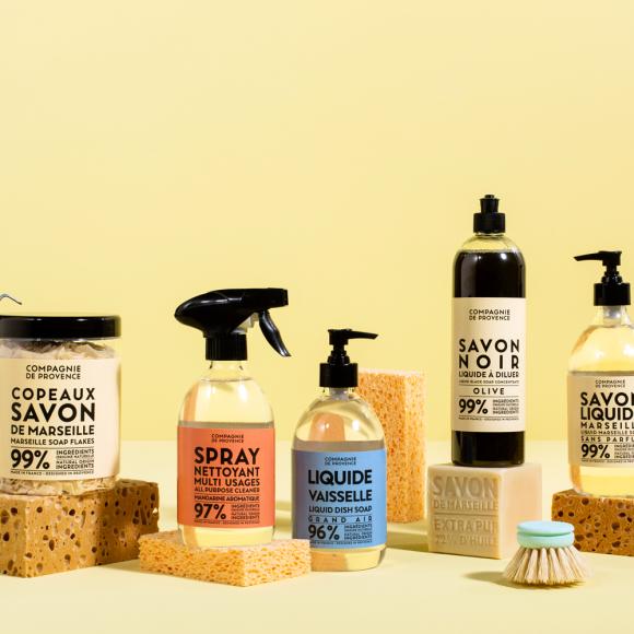 This liquid dish soap is formulated with surfactants of plant origin and is enriched with Marseille soap. It effectively cleans and degreases dishes. Presented in a pump bottle, it may be displayed in the kitchen.