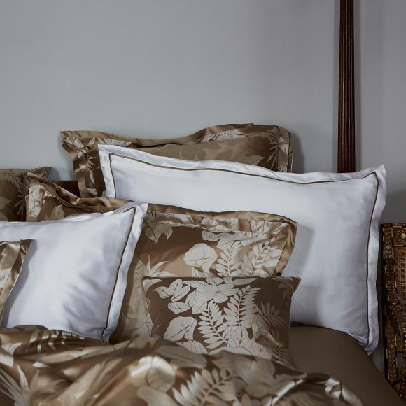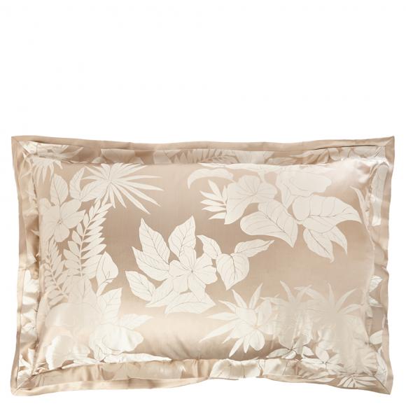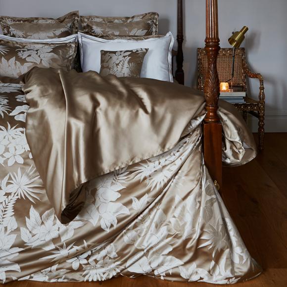 Woven on a traditional jacquard loom, the Tropical Sand duvet cover is part of the Tropical Sand bed linen collection which combines a subtle mix of individually dyed silk yarns in sand and ivory. Featuring a bold foliage design, this is a contemporary take on a classic floral look by Gingerlily.
