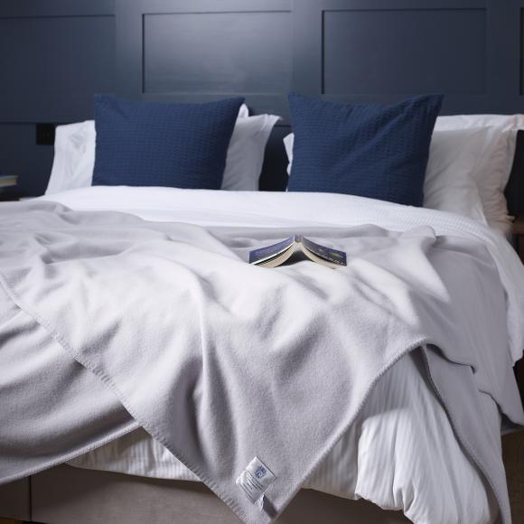 A more modern take on the Duchess Merino wool blanket, Siesta merino comes with whipped stitching so it can be used traditionally on the bed, or as a casual throw.