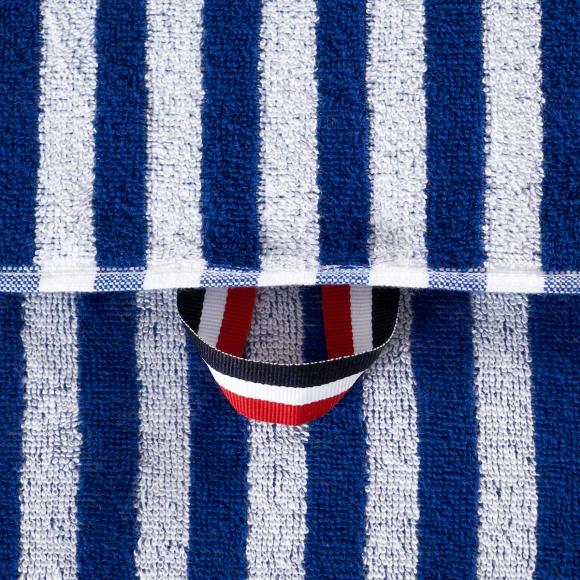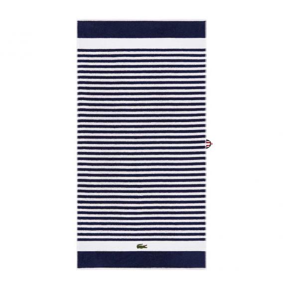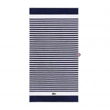 Friendly is a superb sporty striped towel from the Lacoste range, featuring a beautifully weighted 100% Organic Cotton Pile with the embroidered Lacoste crocodile centre stage against a white stripe back drop.