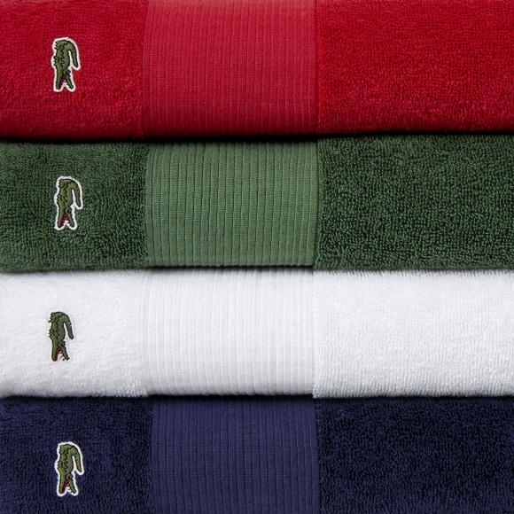 L Le Croco is the core towel in the Lacoste Classic range, featuring a super thick 600 g/m² Organic Cotton Pile with the embroidered Lacoste crocodile logo in the bottom corner.