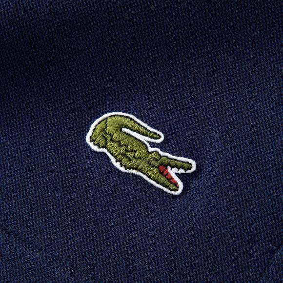 The design is plain, available in two colours - navy and dark grey, and features an application of the iconic green crocodile logo.
