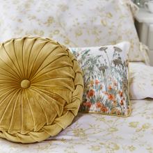 The beautiful Rosanna cushion features elegant pleats made from sumptuous amber velvet