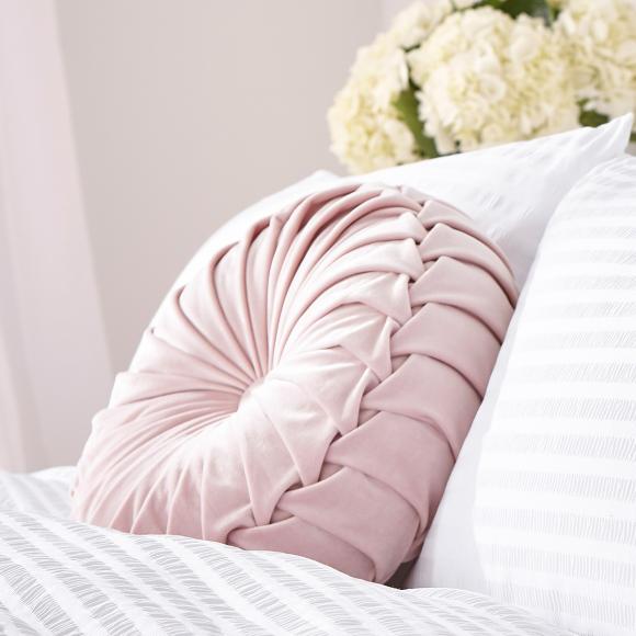 The beautiful Rosanna cushion features elegant pleats made from sumptuous blush velvet