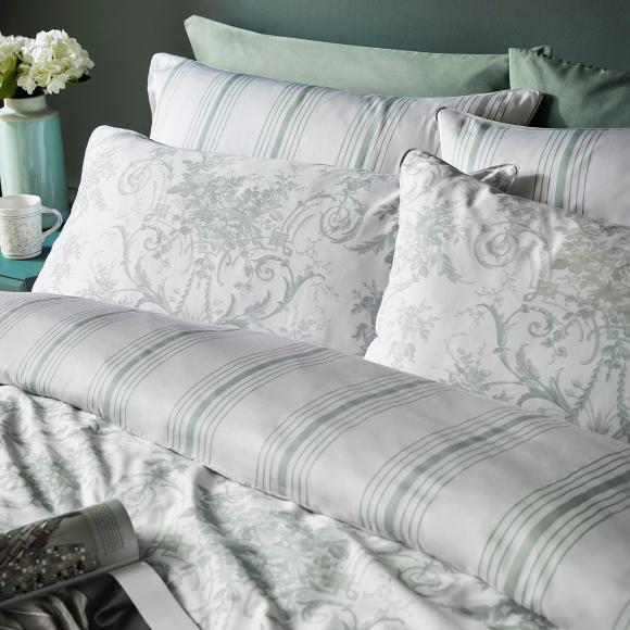 French and romantic, Tuileries decorates this luxurious 100% Cotton sateen 200TC bedding in a soft Sage colourway.