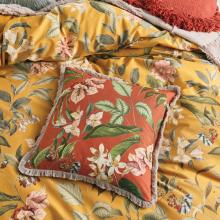 With an unconventionally soothing print of the prettiest botanicals on textured cotton; this set, with a cord piping trim will make for an impressive finish with its coordinating and fringed European pillowcases and cushion.