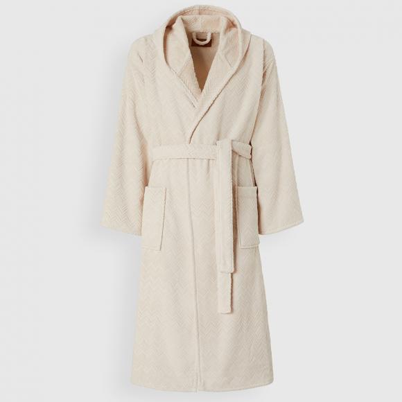 This unisex bathrobe is true to size and includes a tie belt, two pockets and a hood.