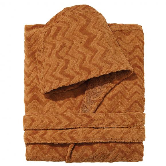 Rex is a Unisex hooded bathrobe in a solid colour cotton terry velour with 3D-effect chevron motif.