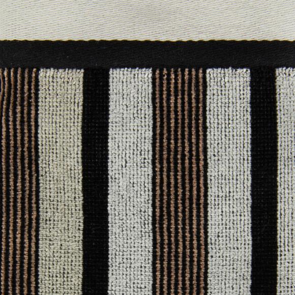 A gorgeous modern, multi striped design in black, white and brown featuring the Missoni logo adorning the bottom corner of the towel.
